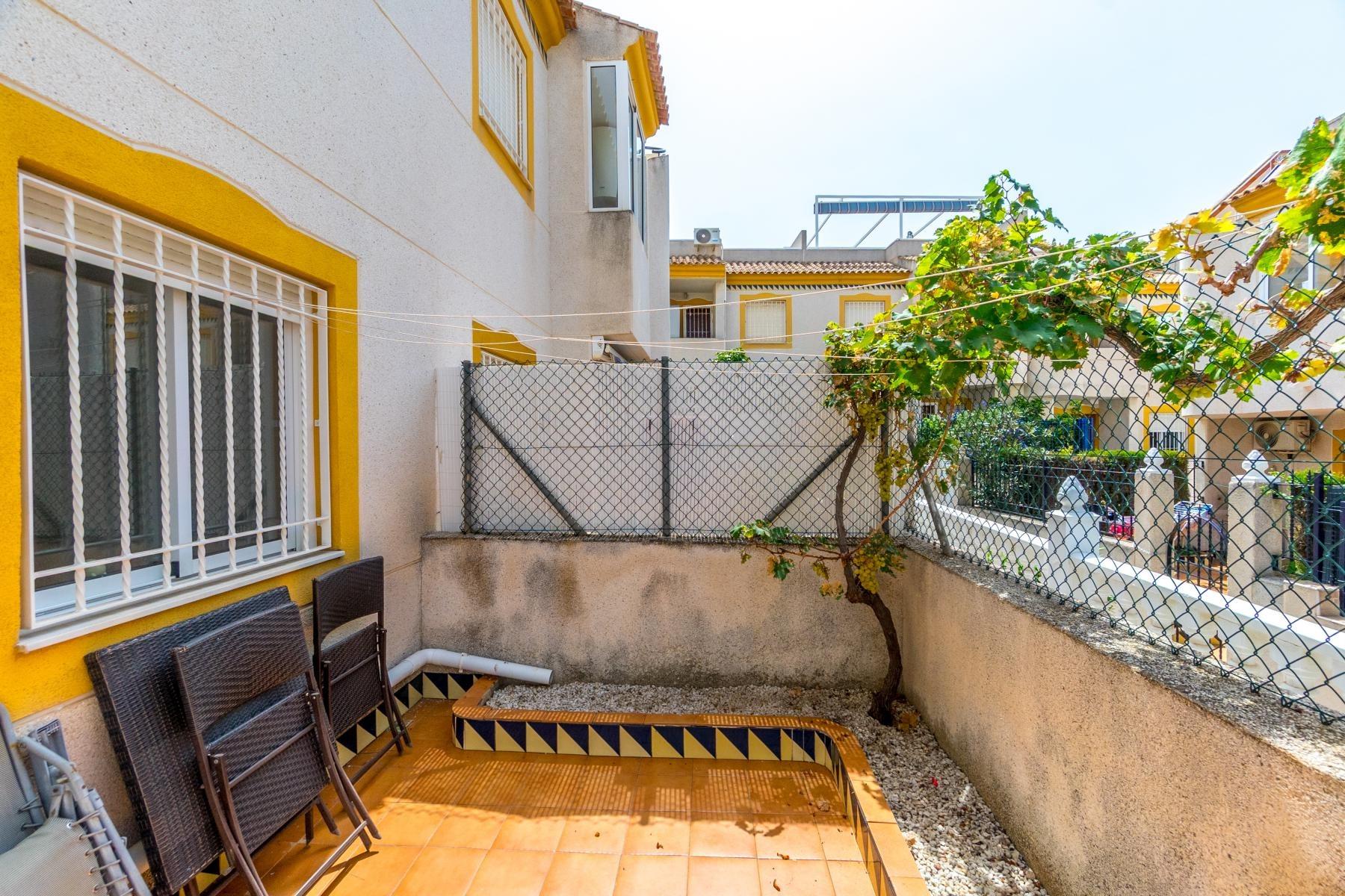 Ground Floor Bungalow in Torrevieja – Pueblo Centro Area~This cozy ground floor bungalow is located in the central area of Pueblo Centro, close to supermarkets, shopping centers, weekly market, water park and all amenities.~~The property features:~~2 bedrooms~~1 fully renovated bathroom~~Living-dining room~~American-style kitchen with access to a closed laundry area~~Back patio with direct access to the communal areas~~The complex offers a community swimming pool for residents only.~~At the front of the property, you will find a tiled garden with the option to park your car and a covered porch at the entrance, ideal for breakfasts or relaxing moments.~~The bungalow is sold furnished, ready to move into. With its south-facing orientation, it is bright and warm all year round, making it perfect both as a permanent home or for holiday stays at any time thanks to the mild Mediterranean temperatures.~~Don’t miss this opportunity, book your viewing today.~~~