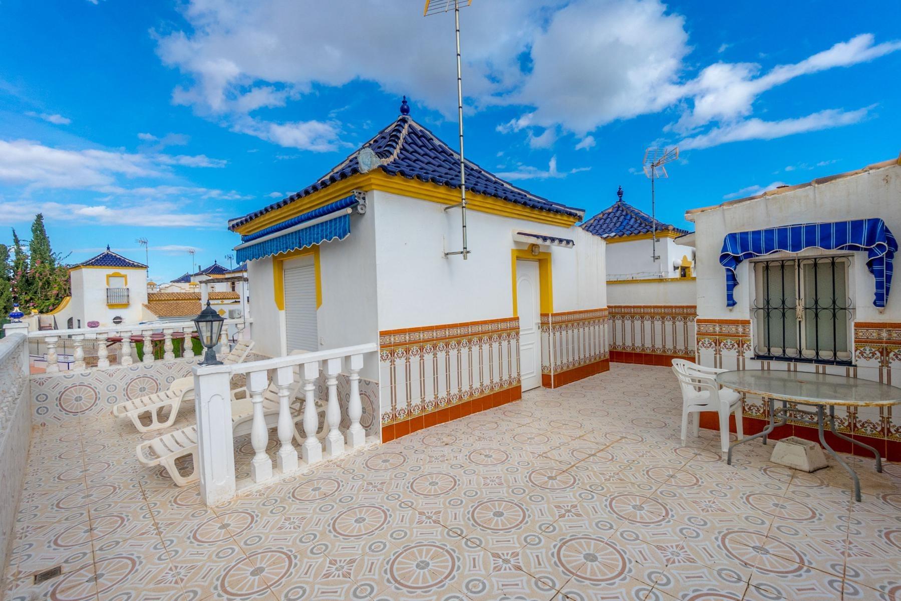 Semi-detached Quad-style home on the ground floor with private roof terrace and basement, located in Los Altos – Torrevieja, a consolidated and highly sought-after residential area for both national and international clients.~Just a few minutes’ drive from the beaches of Torrevieja and Orihuela Costa, close to supermarkets, shopping centres, schools, hospital, bus stops, restaurants and the lively Punta Prima area.~~The property is part of a gated residential complex with 2 communal pools. It is a corner unit located next to one of the pools.~~Practical, functional layout:~~Fully tiled garden, partly covered, ideal as an outdoor living space~~Living-dining room with fitted American-style kitchen~~2 bedrooms and 1 bathroom on the main floor~~Exterior access to the private sunny roof terrace with an additional bedroom with en-suite bathroom, plus a second kitchen and a sunny terrace with direct pool views, perfect for guests or as an independent space~~The property is delivered furnished.~~A great opportunity for those looking for a move-in-ready home with outdoor areas, privacy and a strategic location close to services and beaches on the Costa Blanca. Ideal as a permanent residence, investment or holiday home.~~For more information or to arrange a viewing, please contact us.~