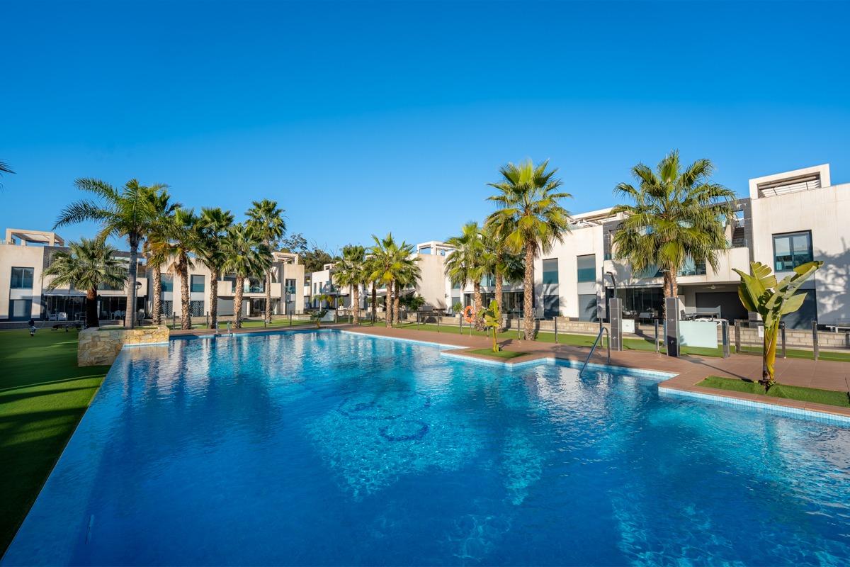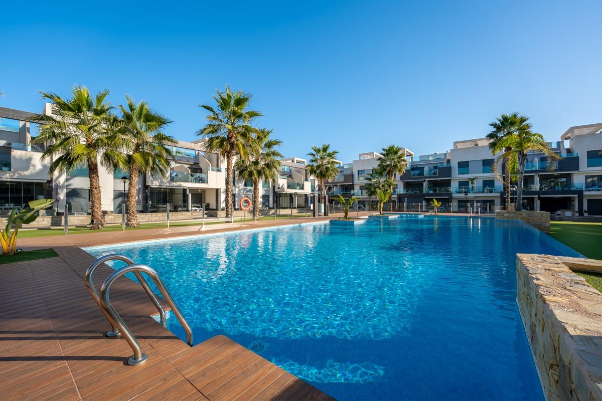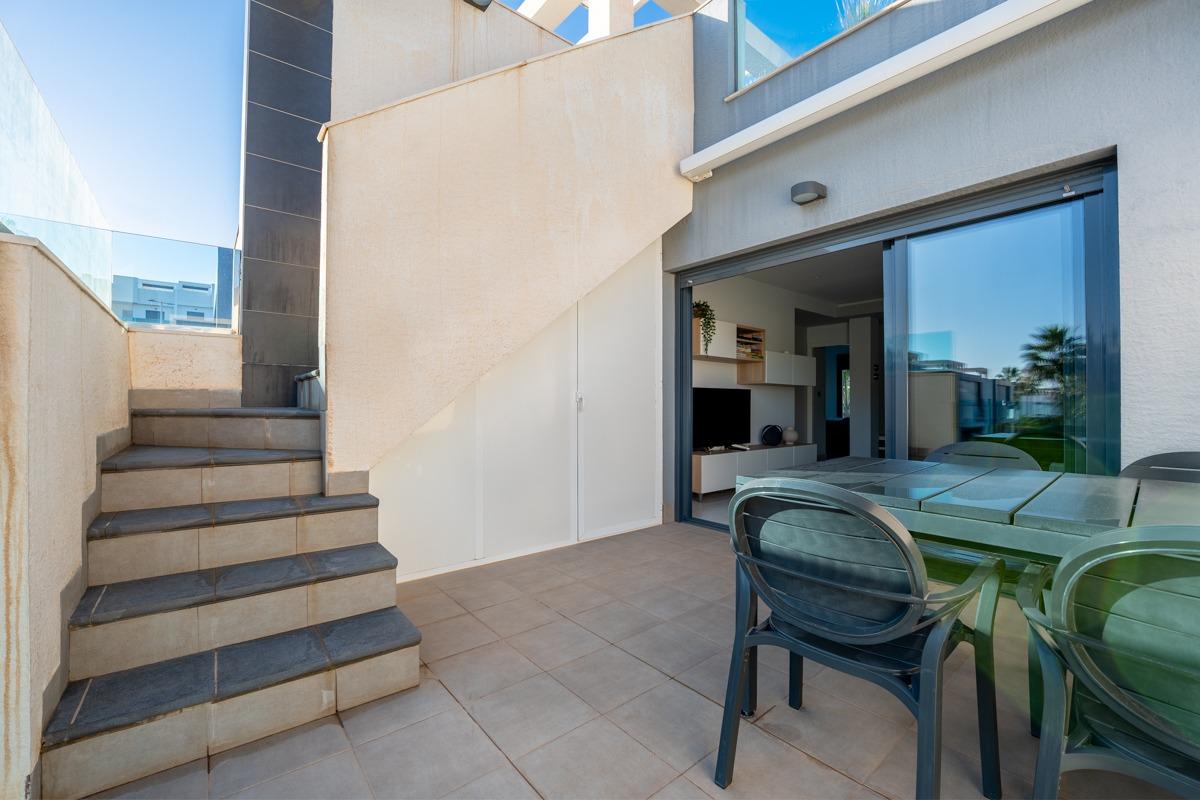 Elegante ático con terraza privada en la azotea y vistas únicas a los hermosos lagos salados.~Este exclusivo ático en El Raso, construido en 2019, está diseñado para aquellos que buscan algo realmente especial.~Ofrece 99 m² de espacio habitable cuidadosamente diseñado, con una cocina y una sala de estar de planta abierta, tres amplios dormitorios, incluido un dormitorio principal con baño en suite, y un elegante baño de invitados.~Todo es moderno, está bien cuidado y resulta acogedor.~~Desde la soleada terraza con toldo eléctrico se accede directamente a lo más destacado de la propiedad: una terraza privada en la azotea diseñada para aquellos que disfrutan de la buena vida.~Con una pérgola, una cocina al aire libre y mucho espacio para muebles de salón, es el lugar perfecto para reunir a la familia y los amigos durante los largos días de verano o las acogedoras veladas bajo las estrellas.~La propiedad también incluye una plaza de aparcamiento privada en el garaje subterráneo y un amplio trastero de aproximadamente 12 m², una valiosa característica adicional.~~Las zonas comunes se encuentran entre las mejores de El Raso.~Aquí encontrará una gran piscina, pistas de petanca, minigolf, parque infantil, gimnasio al aire libre y un lujoso spa con sauna, gimnasio cubierto y piscina cubierta.~Tanto si desea relajarse, mantenerse activo o simplemente disfrutar del sol, todo lo que necesita está a un paso.~~La ubicación es ideal: a solo 100-350 metros de restaurantes, bares y un supermercado, y a solo 10 minutos de las hermosas playas de Guardamar.~Este ático ofrece una combinación única de un entorno natural pintoresco, instalaciones modernas y proximidad a todo lo que hace que la Costa Blanca sea tan deseable.~Este ático no es solo una casa, es un estilo de vida.~~Una oportunidad única para vivir de forma hermosa y cómoda, con espacios exteriores soleados del más alto nivel.~