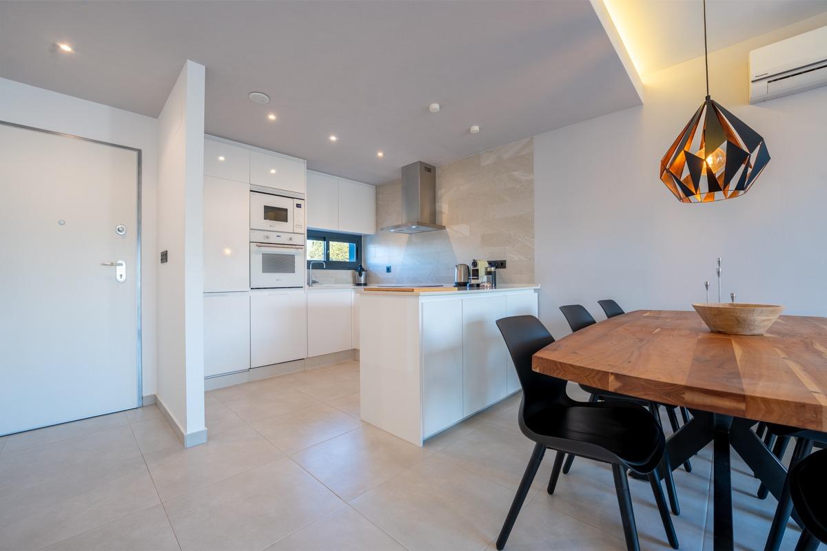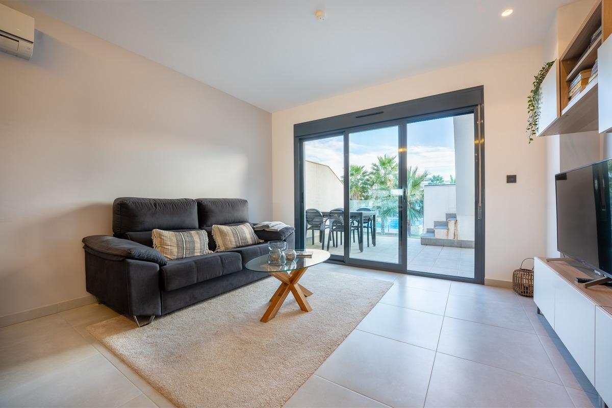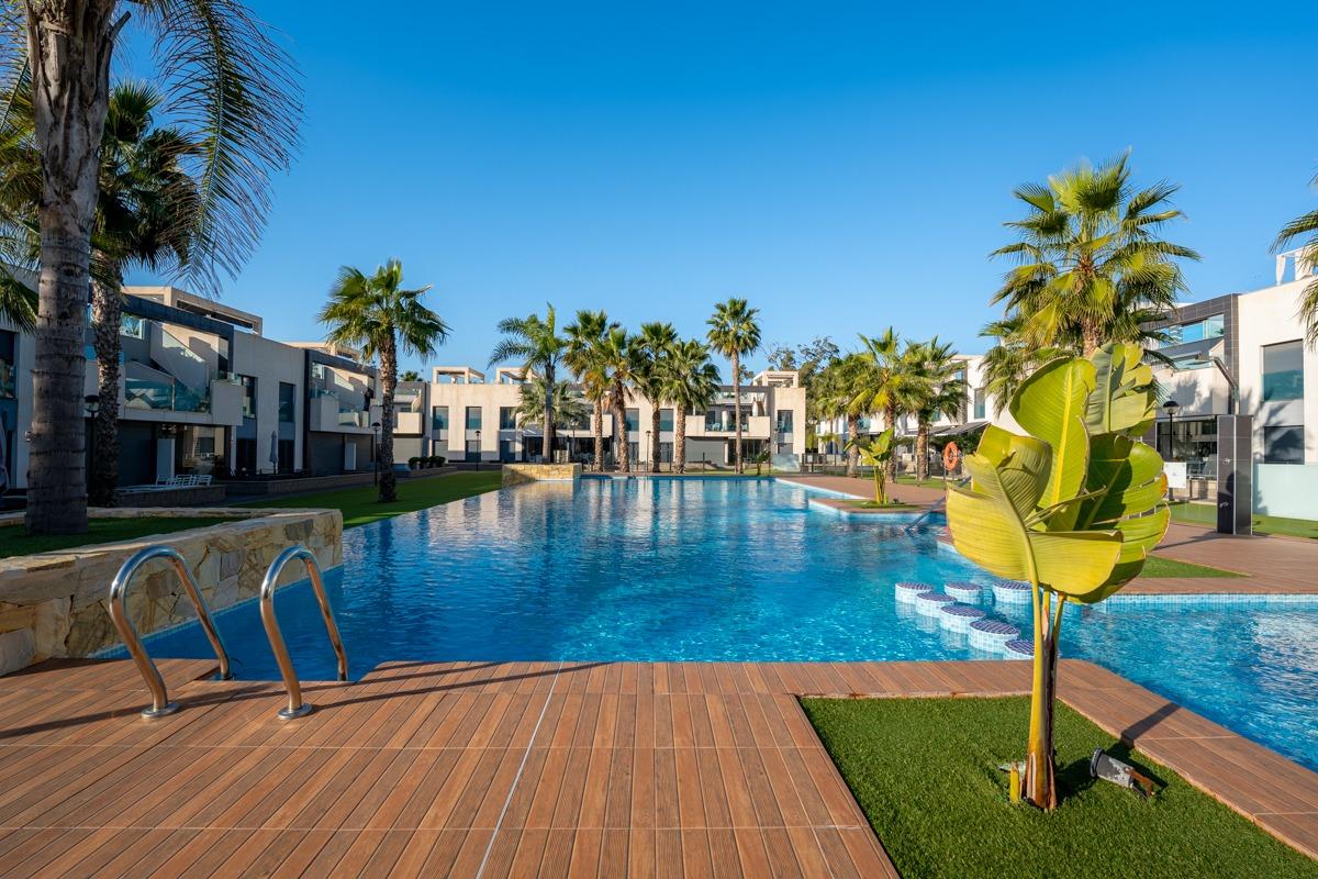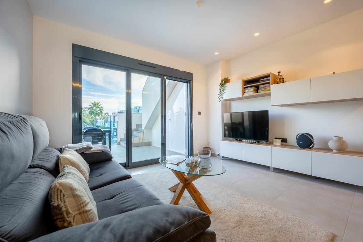 Elegante ático con terraza privada en la azotea y vistas únicas a los hermosos lagos salados.~Este exclusivo ático en El Raso, construido en 2019, está diseñado para aquellos que buscan algo realmente especial.~Ofrece 99 m² de espacio habitable cuidadosamente diseñado, con una cocina y una sala de estar de planta abierta, tres amplios dormitorios, incluido un dormitorio principal con baño en suite, y un elegante baño de invitados.~Todo es moderno, está bien cuidado y resulta acogedor.~~Desde la soleada terraza con toldo eléctrico se accede directamente a lo más destacado de la propiedad: una terraza privada en la azotea diseñada para aquellos que disfrutan de la buena vida.~Con una pérgola, una cocina al aire libre y mucho espacio para muebles de salón, es el lugar perfecto para reunir a la familia y los amigos durante los largos días de verano o las acogedoras veladas bajo las estrellas.~La propiedad también incluye una plaza de aparcamiento privada en el garaje subterráneo y un amplio trastero de aproximadamente 12 m², una valiosa característica adicional.~~Las zonas comunes se encuentran entre las mejores de El Raso.~Aquí encontrará una gran piscina, pistas de petanca, minigolf, parque infantil, gimnasio al aire libre y un lujoso spa con sauna, gimnasio cubierto y piscina cubierta.~Tanto si desea relajarse, mantenerse activo o simplemente disfrutar del sol, todo lo que necesita está a un paso.~~La ubicación es ideal: a solo 100-350 metros de restaurantes, bares y un supermercado, y a solo 10 minutos de las hermosas playas de Guardamar.~Este ático ofrece una combinación única de un entorno natural pintoresco, instalaciones modernas y proximidad a todo lo que hace que la Costa Blanca sea tan deseable.~Este ático no es solo una casa, es un estilo de vida.~~Una oportunidad única para vivir de forma hermosa y cómoda, con espacios exteriores soleados del más alto nivel.~