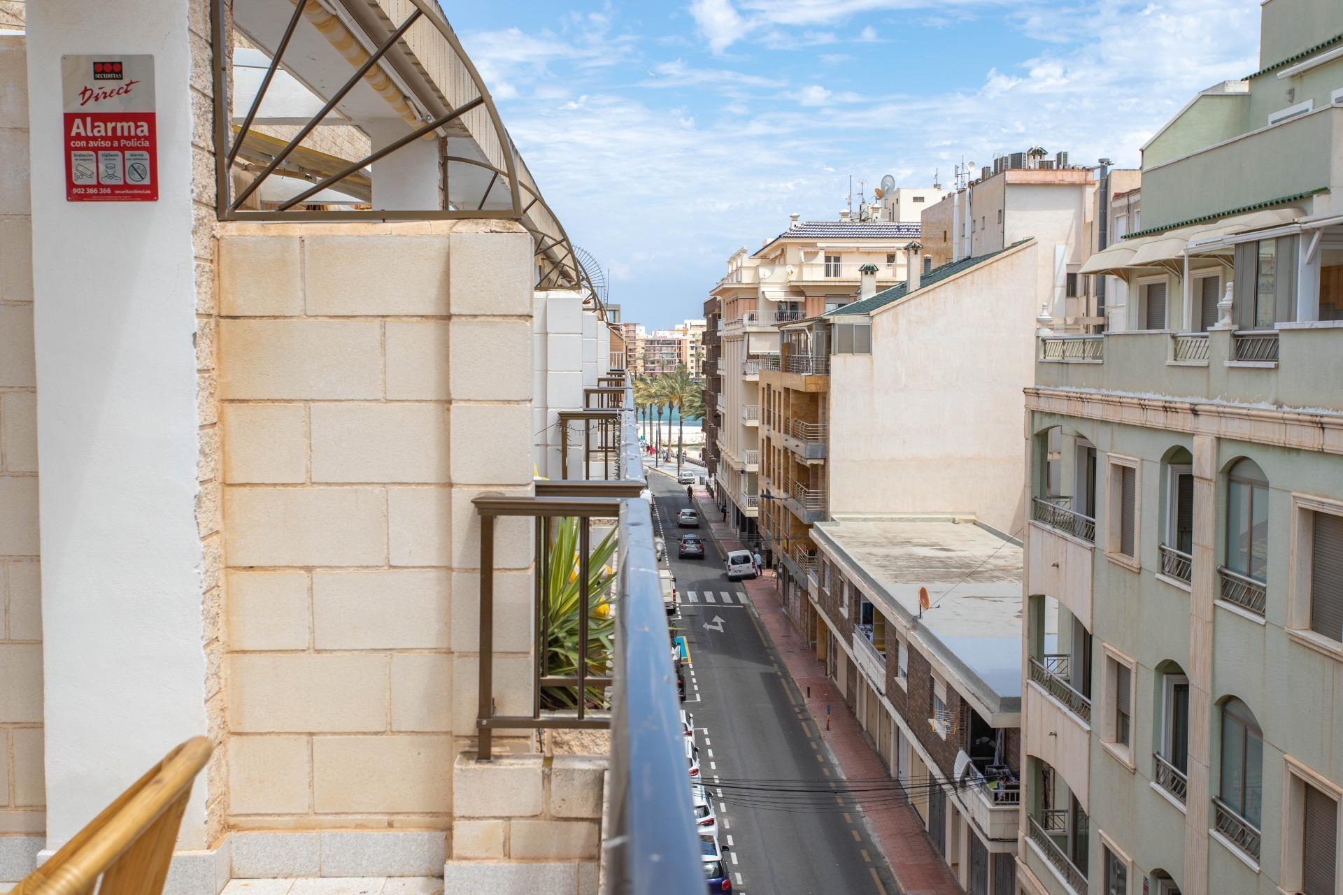Luminoso ático con amplia terraza junto al mar en Playa del Cura – Torrevieja~~Te presentamos una auténtica joya inmobiliaria en una de las zonas más valoradas y emblemáticas de Torrevieja: Playa del Cura. Este ático, situado a escasos 50 metros del mar, ofrece una oportunidad única para vivir o invertir en la costa alicantina, disfrutando del sol, la brisa marina y la comodidad de una ubicación inmejorable.~~Con una superficie construida de 71 m² y una magnífica terraza de 17 m² orientada al sur, esta vivienda destaca por su excelente luminosidad, su distribución funcional y su enorme potencial. Su orientación garantiza sol durante gran parte del día, lo que la convierte en un espacio perfecto tanto en verano como en invierno.~~El interior de la vivienda se distribuye en dos dormitorios de buen tamaño, ambos con armarios empotrados, un baño completo, una cocina independiente totalmente equipada y un salón acogedor que da acceso directo a la gran terraza. Esta última es, sin duda, uno de los puntos fuertes del inmueble: un espacio perfecto para desayunar al aire libre, leer al sol, compartir veladas con amigos o simplemente relajarse contemplando el entorno y disfrutando de las vistas parciales al mar.~~La vivienda conserva su estado original, lo que permite reformarla y adaptarla a tus gustos personales, haciendo de ella un hogar completamente personalizado o un atractivo proyecto de inversión. Además, se entrega amueblada, lo que facilita su uso inmediato tanto para residencia habitual como para alquiler vacacional.~~Entre los extras incluidos en el precio destacan el aire acondicionado con bomba frío/calor, sistema de alarma, trastero privado, ascensor en el edificio, acceso a solárium comunitario y balcón. Todo pensado para ofrecer el mayor confort en el día a día.~~Ubicada en una zona muy demandada por residentes y turistas, la propiedad está rodeada de todos los servicios necesarios: supermercados, farmacias, transporte público, cafeterías, comercios locales, zonas verdes y, por supuesto, la playa a tan solo unos pasos. También se encuentra muy cerca del Paseo Marítimo y del centro urbano, donde se concentra la mayor actividad cultural, comercial y gastronómica de Torrevieja.~~Este ático representa una opción ideal para quienes desean vivir junto al mar sin renunciar a la cercanía de todos los servicios urbanos. También es una excelente oportunidad de inversión por su alto potencial de rentabilidad en el mercado de alquiler turístico, gracias a su ubicación estratégica y su cercanía a una de las playas más populares de la ciudad.~~Con un precio competitivo de 159.990 €, esta propiedad lo tiene todo: ubicación, espacio exterior, orientación sur, posibilidades de reforma y una conexión privilegiada con el estilo de vida mediterráneo.~~No dejes pasar esta oportunidad de adquirir un ático con encanto en el corazón de la Costa Blanca. Ponte en contacto con nosotros y agenda tu visita. ¡Tu nuevo hogar junto al mar te está esperando!~
