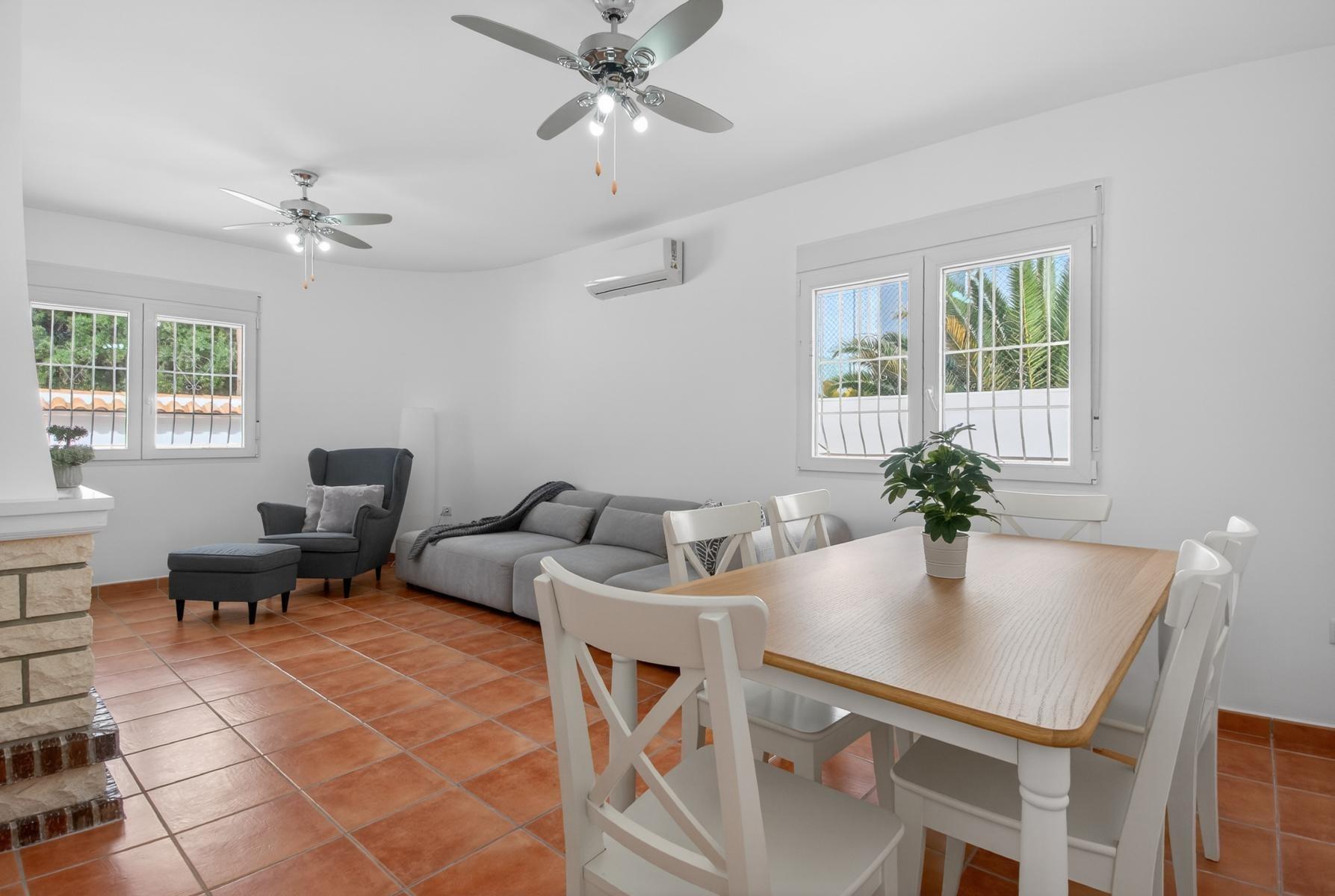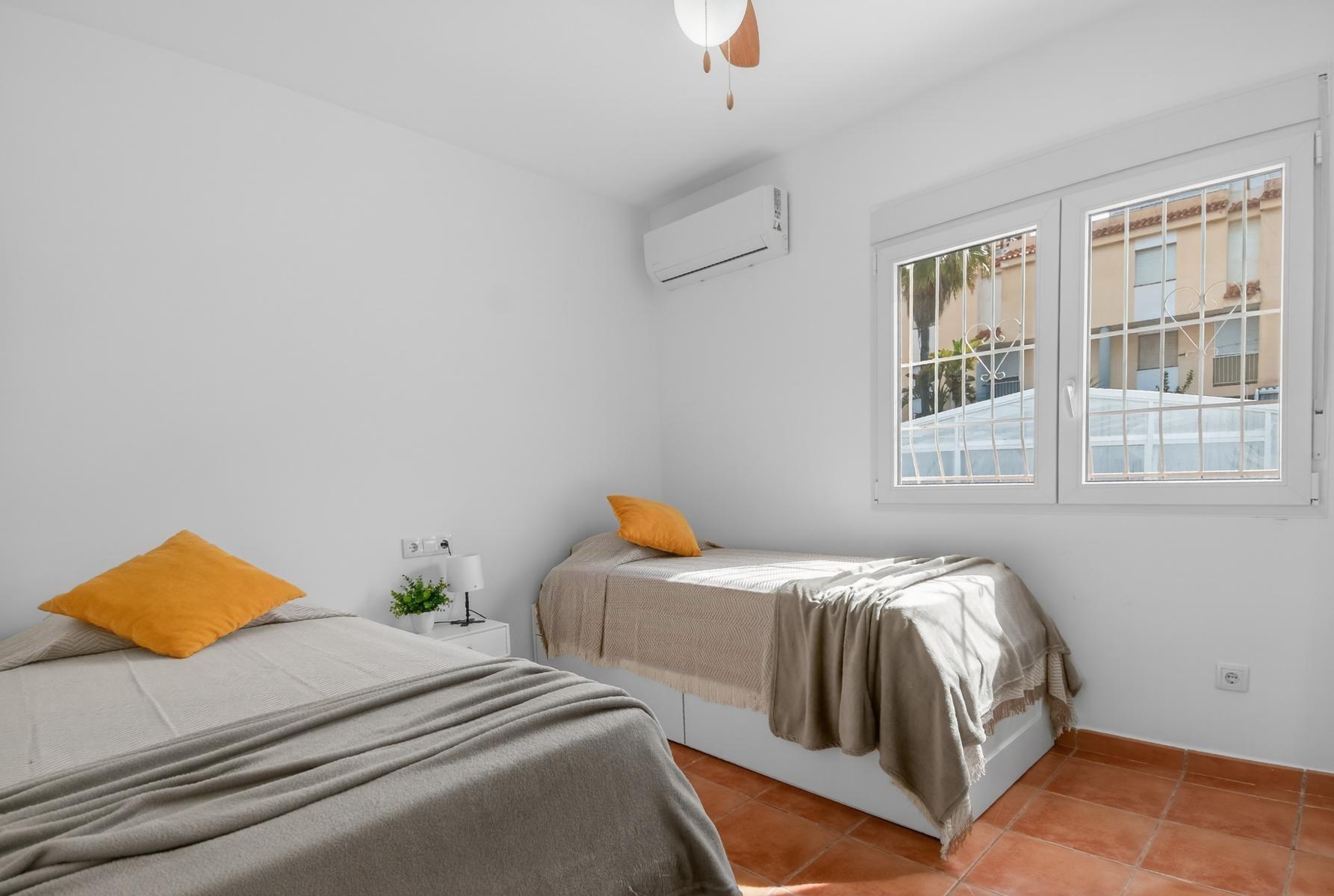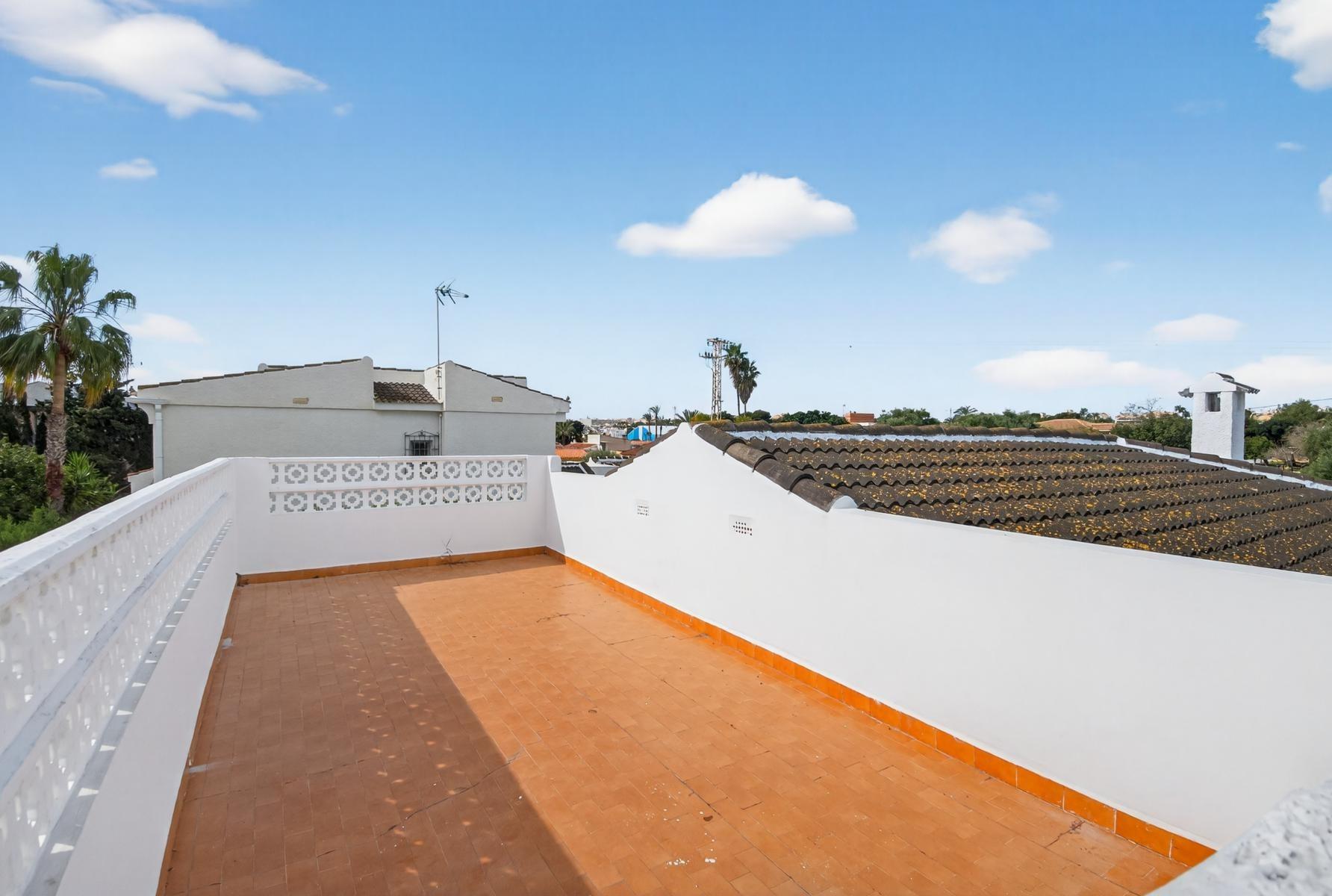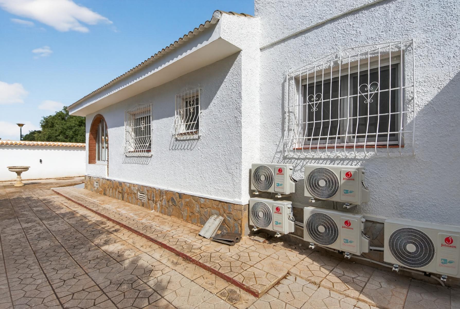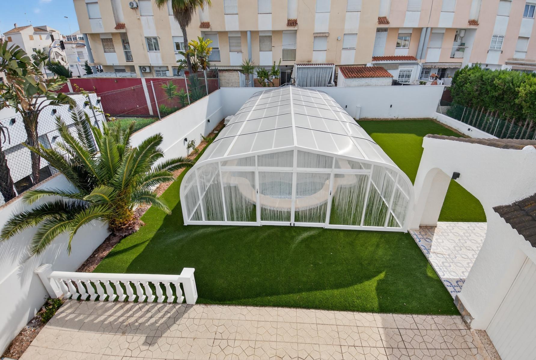 Exclusivo Chalet independiente de estilo mediterráneo ubicado en una amplia parcela de 757m², con un interior completamente reformado en estilo moderno y materiales de buena calidad. Uno de sus grandes valores es que se desarrolla íntegramente en una sola planta, ofreciendo máxima comodidad y funcionalidad con todas las estancias en el mismo nivel.~~La vivienda cuenta con 3 dormitorios y 2 baños, cocina independiente equipada y un amplio salón-comedor con chimenea, creando un espacio acogedor y práctico tanto para el día a día como para estancias prolongadas. Su orientación múltiple permite disfrutar de abundante luz natural durante todo el día, aportando una sensación constante de calidez y bienestar.~~En el exterior, la propiedad está diseñada para disfrutar sin complicaciones, con piscina privada cubierta, zonas de jardín con césped artificial, áreas embaldosadas, porche cubierto ideal para comidas al aire libre y garaje cerrado. Además, dispone de un solárium privado, que añade un espacio extra versátil para relax o uso social.~~Ubicada a menos de 1 km del mar y la playa, y cerca de supermercados, colegios, hospital y todo tipo de servicios, se encuentra en una zona altamente demandada tanto por clientes nacionales como internacionales, valorada por su cercanía al mar y su ambiente tranquilo.~~Se trata de una propiedad que destaca por su equilibrio entre espacio, privacidad, comodidad y ubicación, ideal para quienes buscan una vivienda principal confortable o una segunda residencia de calidad en la costa.~~Contáctanos para más información o para concertar una visita privada.~