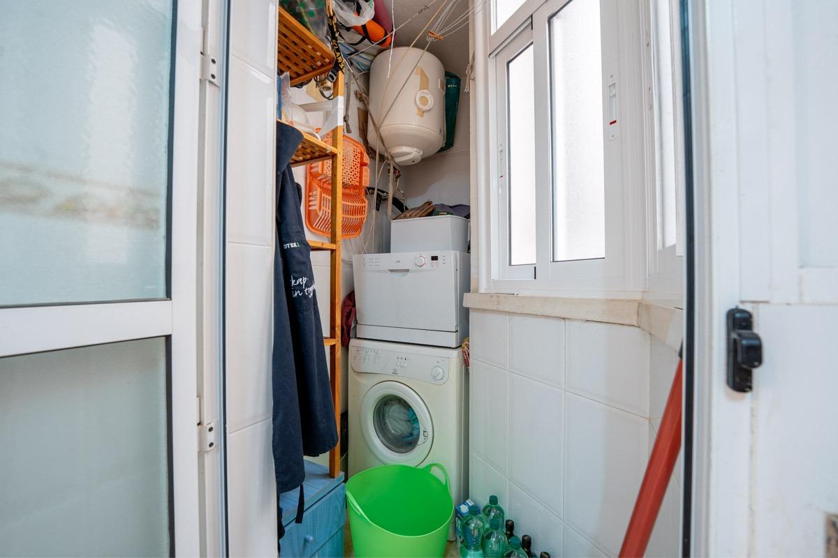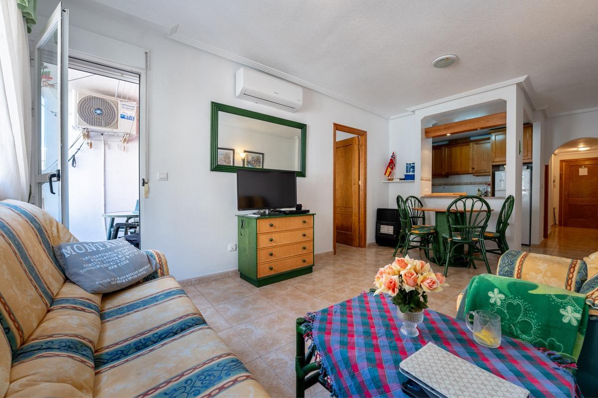 Apartamento de 2 dormitorios, 1 baño y balcón, situado en una zona muy cotizada cerca de la playa y del puerto deportivo.~~El edificio está programado para una renovación integral. Los costes ya se han pagado, lo que proporciona tranquilidad al futuro propietario.~El apartamento también se beneficia de un sistema de aire acondicionado recientemente instalado, así como de cámaras de vigilancia tanto en la entrada como en el garaje.~~La propiedad está situada en la segunda planta de un edificio con ascensor y ofrece una distribución bien distribuida y funcional.~- Zona de entrada con espacio de almacenamiento.~- Amplio dormitorio principal con gran armario empotrado.~- Cuarto de baño con bañera y ventana para ventilación natural.~- Cocina con espacio suficiente en los armarios, lavavajillas y acceso directo al lavadero.~- La barra de desayuno de estilo americano crea una conexión natural con la zona de estar.~- Salón con acceso al balcón y al segundo dormitorio.~- El apartamento se encuentra en buen estado y se vende amueblado.~~Características comunes:~- Piscina comunitaria con zona de descanso.~- Azotea compartida con excelente exposición al sol y vistas abiertas de los alrededores.~- Garaje privado con espacio para coches y bicicletas, una clara ventaja en esta zona.~~Ubicación:~La propiedad se encuentra junto al Parque de las Naciones, un parque verde y bien cuidado con pequeños lagos, senderos para caminar y parques infantiles.~Durante los meses de verano, aquí se celebran eventos y conciertos que se pueden disfrutar desde la terraza comunitaria de la azotea.~~A unos 900 metros de la playa, el puerto deportivo y el centro de la ciudad, donde encontrará restaurantes, cafeterías, tiendas y servicios para el día a día.~Torrevieja es conocida por su clima agradable y su animado ambiente durante todo el año. Una propiedad con una ubicación atractiva, ideal como vivienda vacacional o residencia permanente.~