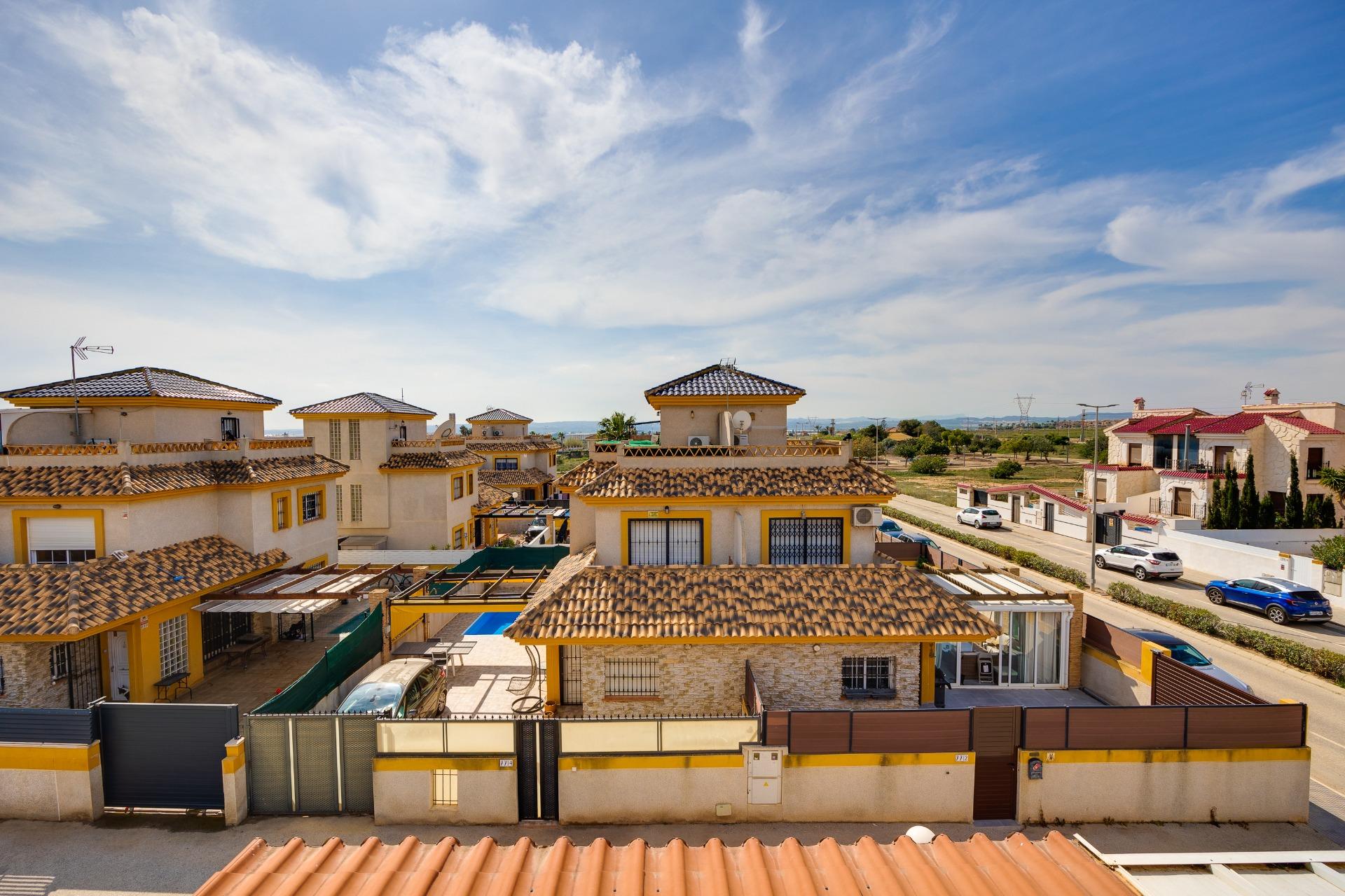Descubre este encantador chalet independiente situado en La Herrada, en Los Montesinos, una tranquila zona residencial ideal para quienes buscan calidad de vida, privacidad y cercanía a todos los servicios. Además, se encuentra a tan solo 10–15 minutos en coche de las playas de Torrevieja y del centro de la ciudad. La vivienda destaca por su excelente estado de conservación y por el cuidado en cada uno de sus detalles, lo que la convierte en un hogar listo para disfrutar desde el primer día. ~~Al acceder a la propiedad nos recibe un precioso jardín privado con piscina, el espacio perfecto para disfrutar del clima mediterráneo. La piscina cuenta con taburetes estratégicamente situados que crean una original zona de bar dentro del agua, ideal para compartir momentos únicos. El exterior se completa con una zona de barbacoa y un práctico trastero. ~~El chalet se distribuye en tres plantas perfectamente aprovechadas. En la planta baja encontramos un amplio y luminoso salón-comedor, muy acogedor y con acceso directo al jardín, creando una perfecta conexión entre interior y exterior. También dispone de una cocina independiente totalmente equipada, un dormitorio doble y un baño completo con plato de ducha. ~~En la primera planta se encuentran dos dormitorios, uno de ellos especialmente amplio e incluyendo una práctica zona de oficina. En esta planta también hay un baño completo con plato de ducha. Y en la última planta encontramos una zona de lavandería y acceso a un espectacular solárium privado con impresionantes vistas panorámicas despejadas a la Laguna Rosa, un lugar privilegiado para disfrutar de los atardeceres y del entorno natural. ~~La vivienda cuenta además con aire acondicionado, calefacción y se vende completamente amueblada y equipada, lista para entrar a vivir y empezar a disfrutarla desde el primer momento. Una propiedad única que combina comodidad, privacidad y una ubicación privilegiada. ¡CONTACTANOS!~