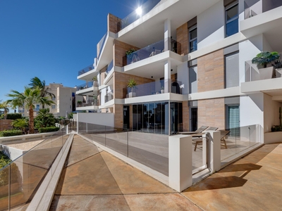 Presentamos esta propiedad de alto standing en una de las zonas más prestigiosas de Orihuela Costa en CAMPOAMOR. ~Apartamento en planta baja con amplia terraza privada, ideal para disfrutar del estilo de vida mediterráneo en un entorno privilegiado.~~La vivienda muy luminosa por sus tres orientaciones dispone de tres dormitorios, el principal con baño en suite y terreza privada, un baño, cocina americana, salón con acceso a porche acristalado qué permite su uso todos los días del año y estupenda terraza con vistas despejadas a las piscina con zonas verdes. Además cuenta con aire acondicionado/calefacción central, una galería y se vende amueblado. Es perfecta para aquellas personas que quieren comidad y lujo juntos, sin escaleras y todo a pie.~~Su ubicación junto al mar, en una de las mejores urbanizaciónes de lujo de nuestra Costa Blanca con piscina comunitaria, piscina climatizada y gimnasio, plaza de garaje y trastero, hace de esta vivienda una excelente inversión premiun aportando máximo confort y valor añadido.~Sin duda una de las mejores zonas del Mediterráneo, con todos los servicios, restaurantes, supermercados, mercadillo los jueves y campos de golf cercanos, y a pocos minutos de Torrevieja y centros comerciales como C.C. ZENIA BOULEBARD... Una oportunidad única para vivir o invertir a un paso del mar.~~Contáctenos para más información o visitar, estaremos encantados de atenderle.~~IMPUESTOS Y TASAS NO INCLUIDOS. Aviso legal: la información descrita es meramente informativa, no vinculante y puede contener algún error.~~