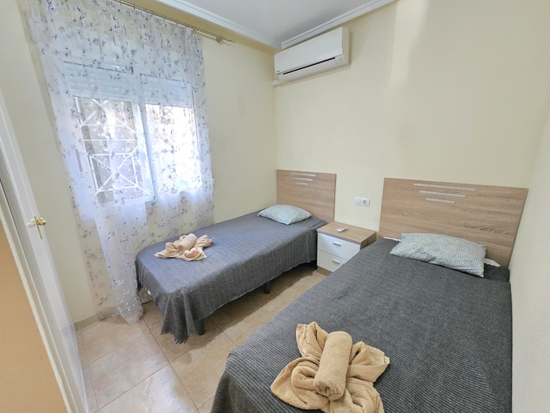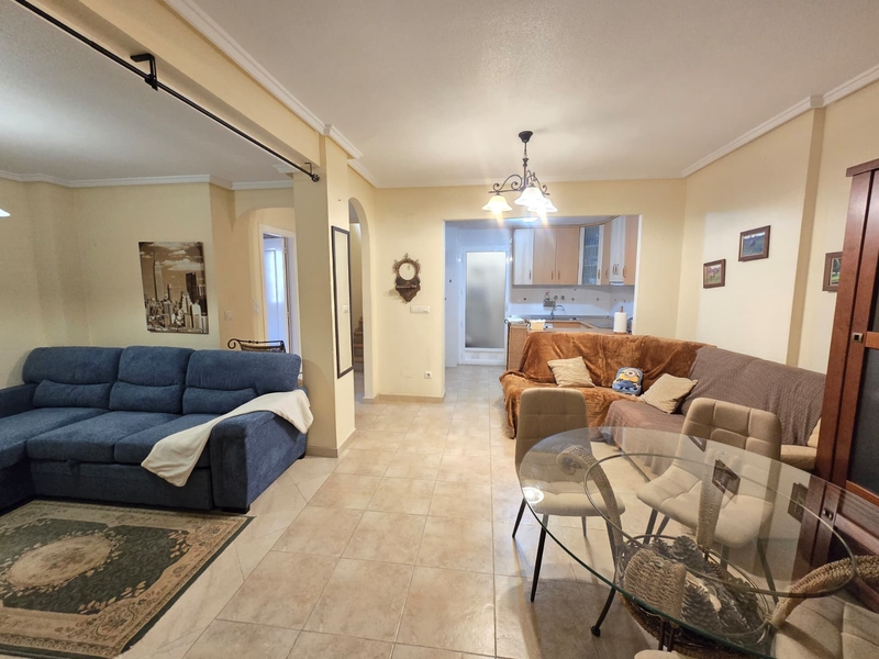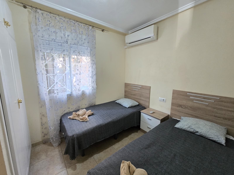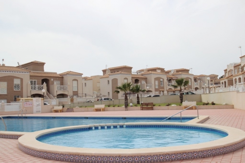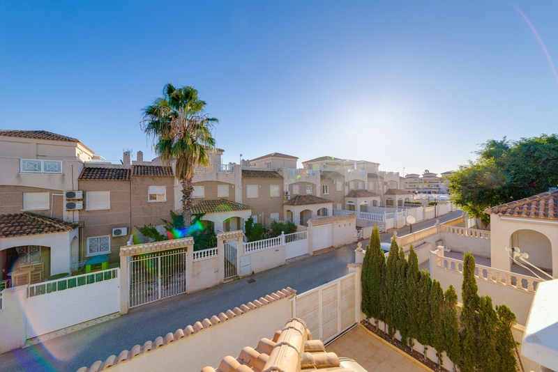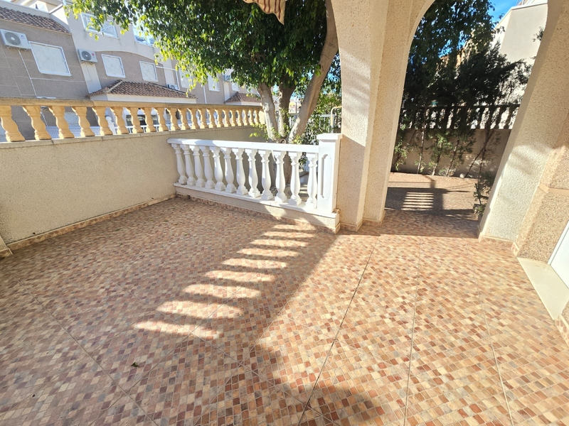 Moderno chalet en urbanizacion cerrada en Aguas Nuevas, Torrevieja! Prestigioso complejo esta ubicado en mejor area de Torrevieja a tan solo 20 min andando hasta la playa los locos. Bares , restaurantes y supermarket mercadona esta a 10 min andando Chalet dispone de 3 dormitorios y 2 baños, amplio salon comedor, cocina independiente, totalmente equipada